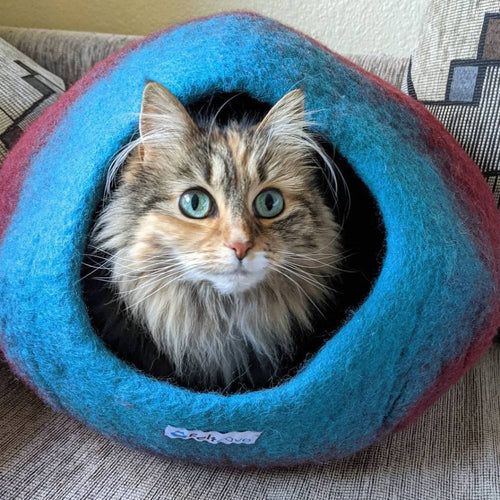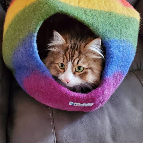 My cat absolutely loves his cat cave! It’s perfect for hiding and is cozy enough to sleep in. Whenever I don’t know where he is, the first place I look is in his cave! He looks so adorable in it, and I love the colors. Thank you to the artisans in Nepal that hand-make these caves, in multiple colors and in a medium and large size to fit all cats. Not only was the cave in perfect condition, but it came with a mouse too! I’m so thankful that I found Feltcave. Their caves are amazing but also affordable. We live in a primarily dog dominant world, so it’s important to bring awareness to cat brands like Feltcave, who are showing the world that cats are valued members of the family too. Thank you Feltcave!!